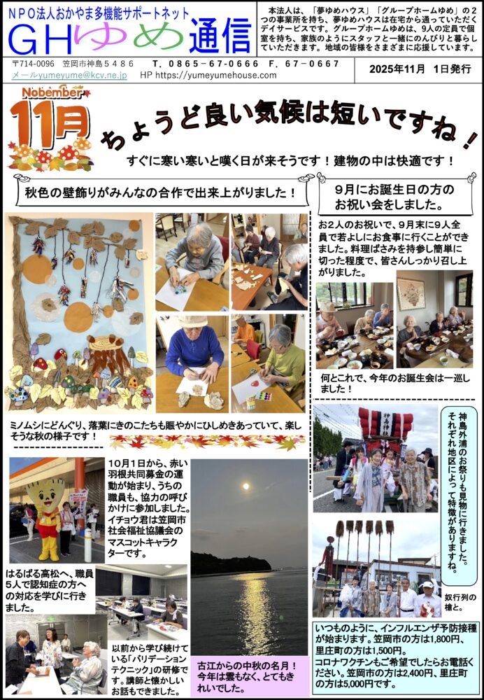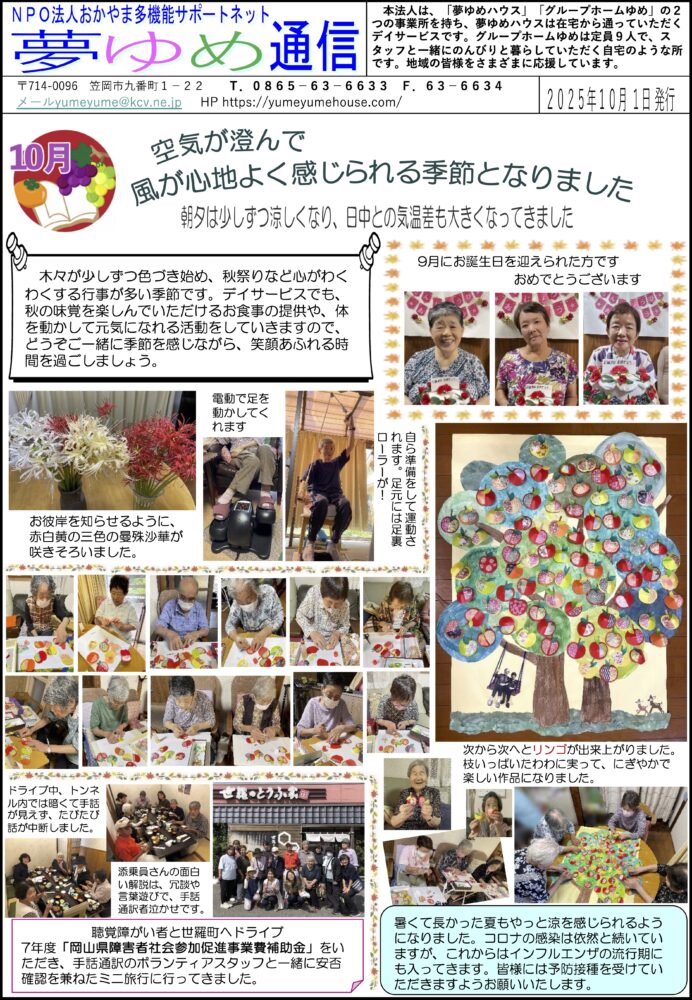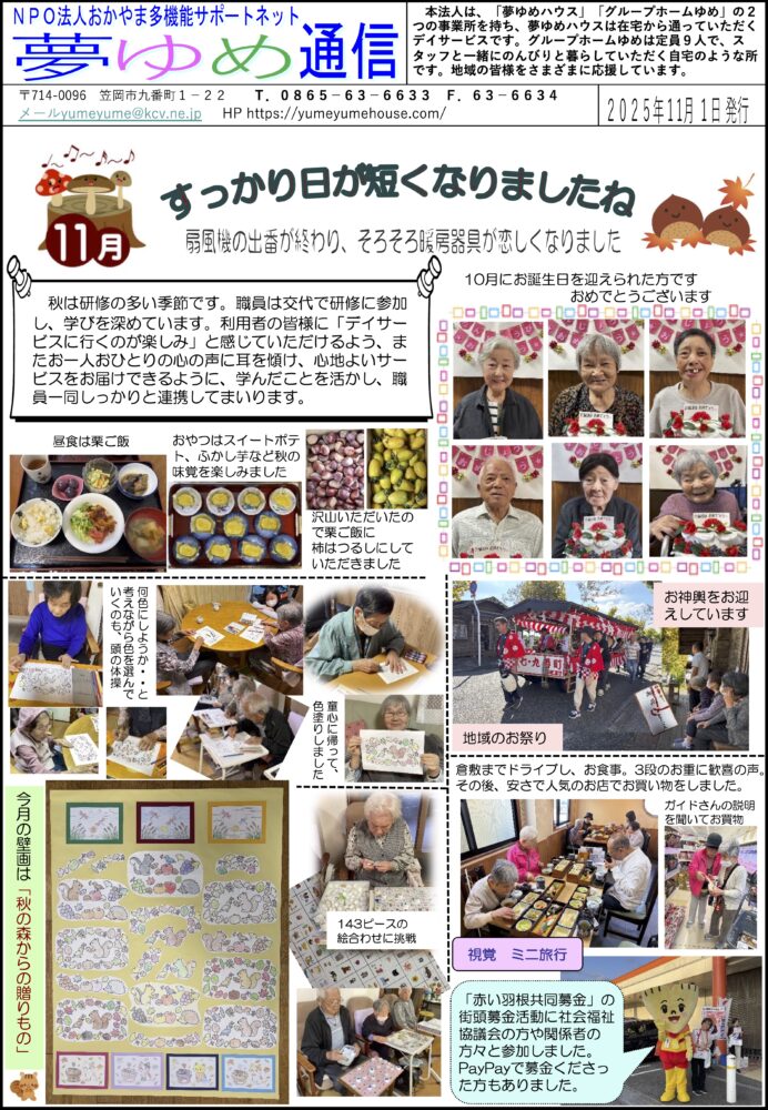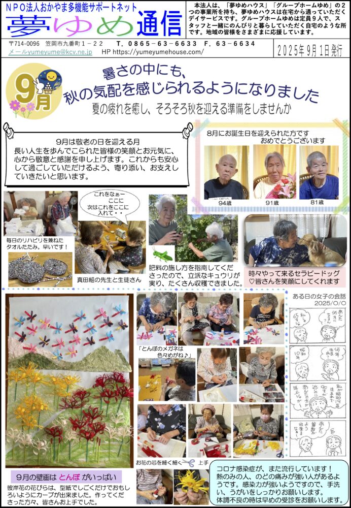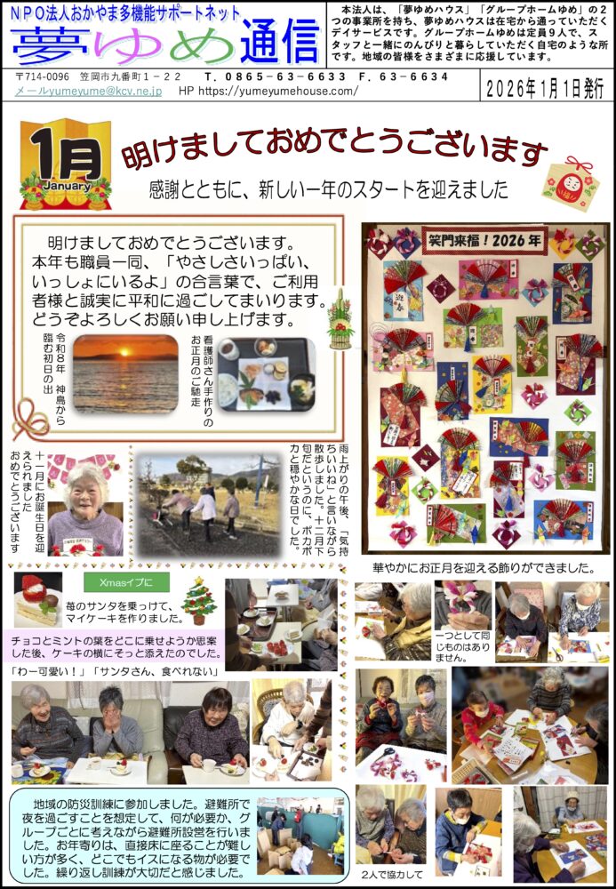特定非営利活動法人おかやま多機能サポートネットが運営する「夢ゆめハウス」「グループホームゆめ」の通信紙です。